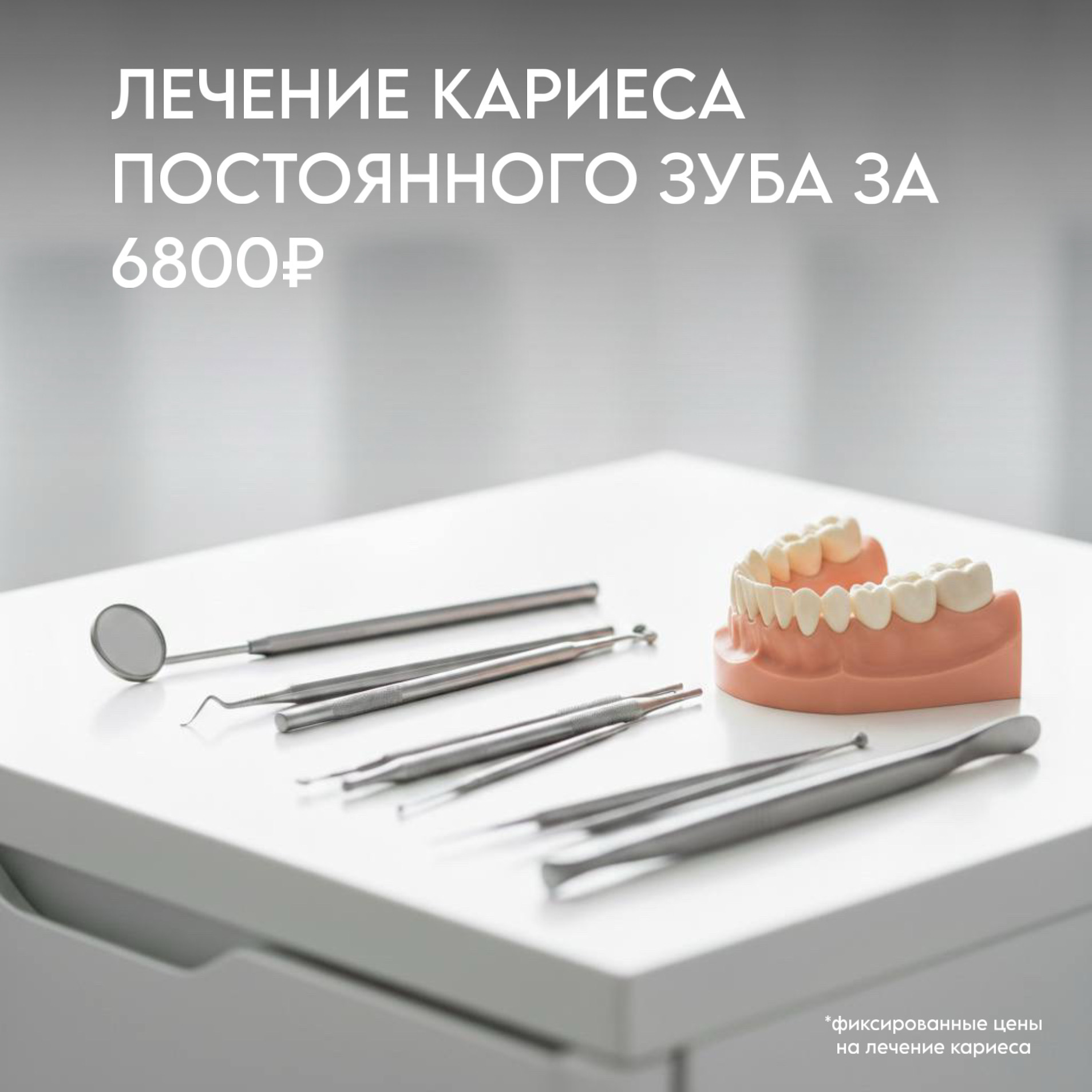 Лечение кариеса под ключ — фиксированная цена 6.800 руб. и максимальный результат*